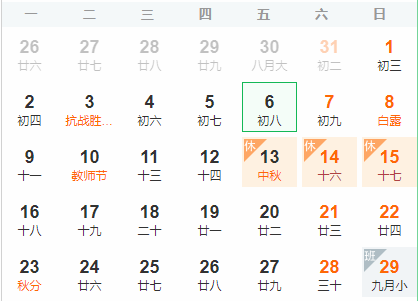 中秋節放假通知